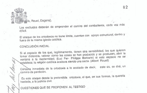 Eso que han leído ustedes lo ha escrito el juez Juan Emilio Vilá Mayo, de Barcelona. Y forma parte del proceso abierto por el intento de la Archidiócesis de Barcelona de usar la justicia civil para acabar con la web de Germinans germinabit. Primero interpusieron una demanda contra el honor, que retiraron ante la intención del juez de llamar a declarar al mismísimo cardenal. El proceso ha seguido adelante por un supuesto delito de suplantación de personalidad.