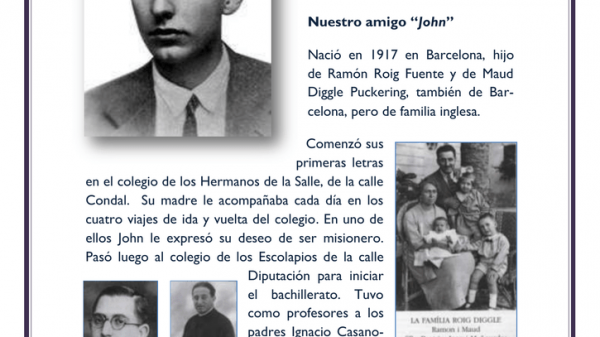Hoy será beatificado en la basílica de la Sagrada Familia Joan Roig Diggle, un joven católico de 19 años asesinado en 1936. Joan nació en la Barcelona de 1917. El año 1934 se traslada a vivir a El Masnou con su familia, empieza a trabajar en Barcelona y continúa estudiando por las noches. Le queda tiempo para ir a misa cada día y hacer largos ratos de oración. También hace de catequista a los niños de la parroquia de Sant Pere del Masnou y se integra a la Federació de Joves Cristians de Catalunya (FEJOC).