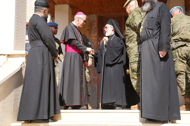 Juan Antonio Aznárez mantuvo un encuentro con el contingente español de misión de las Naciones Unidas y se reunió con el arzobispo ortodoxo y el patriarca Maronita