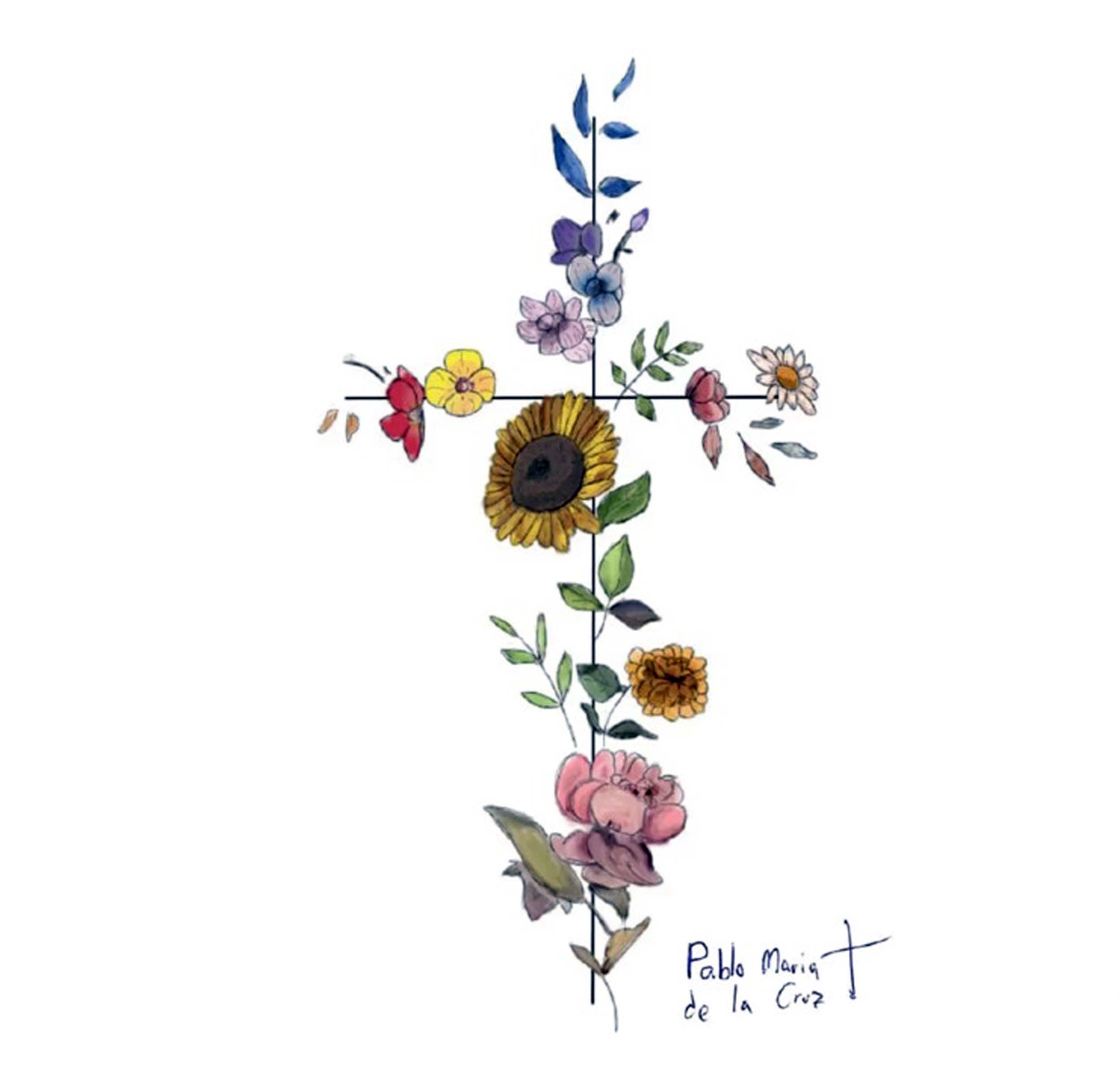 El 2 de agosto, en la rueda de prensa en el avión que trasladaba al Papa Francisco a la JMJ de Lisboa, la corresponsal de COPE en el Vaticano e Italia, Dña. Eva Fernández, entregó al Santo Padre como obsequio de los periodistas el dibujo que fray Pablo María había hecho de una “cruz florecida”, llena de vida y de flores, y que, más tarde, junto con la frase bíblica de Isaías 43, 1 y un pensamiento sobre el significado de la enfermedad de Fray Pablo, se utilizarían para confeccionar el recordatorio de su funeral.