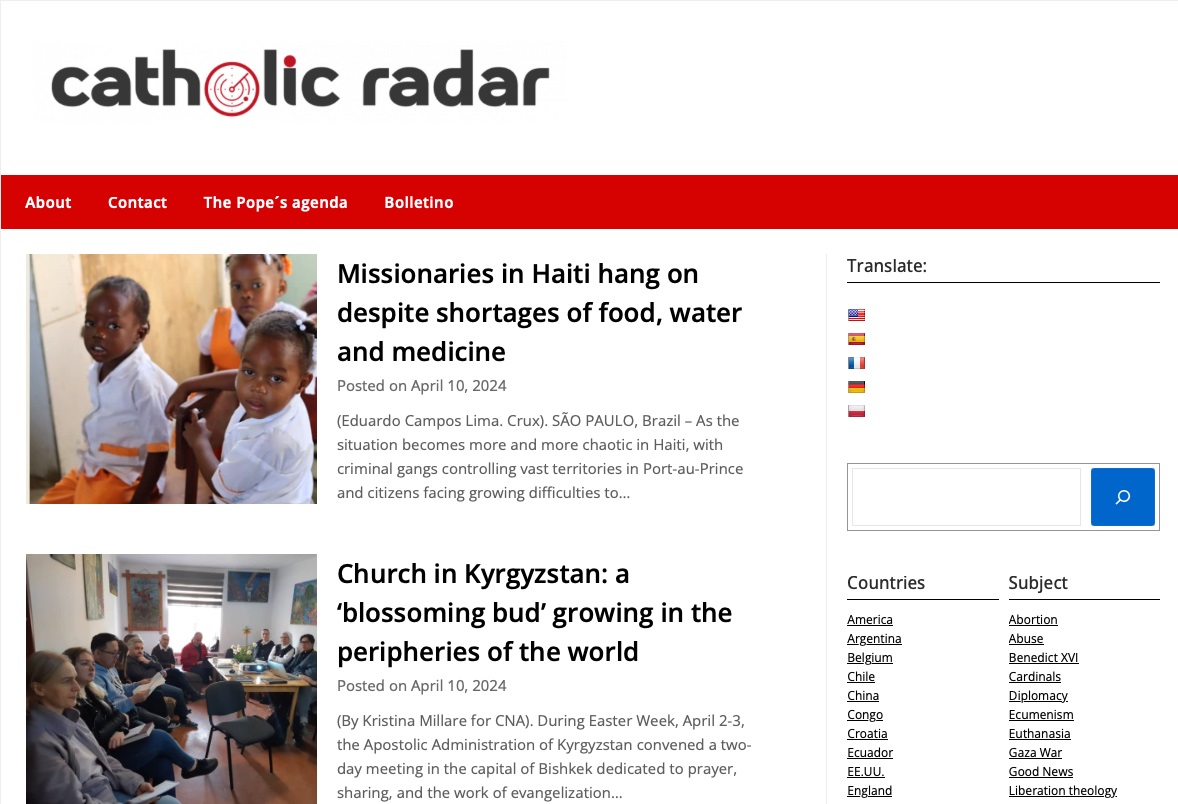 Acaba de salir a la calle con el nombre de “Catholic Radar”, una web que ofrece noticias de medios internacionales, preferentemente.