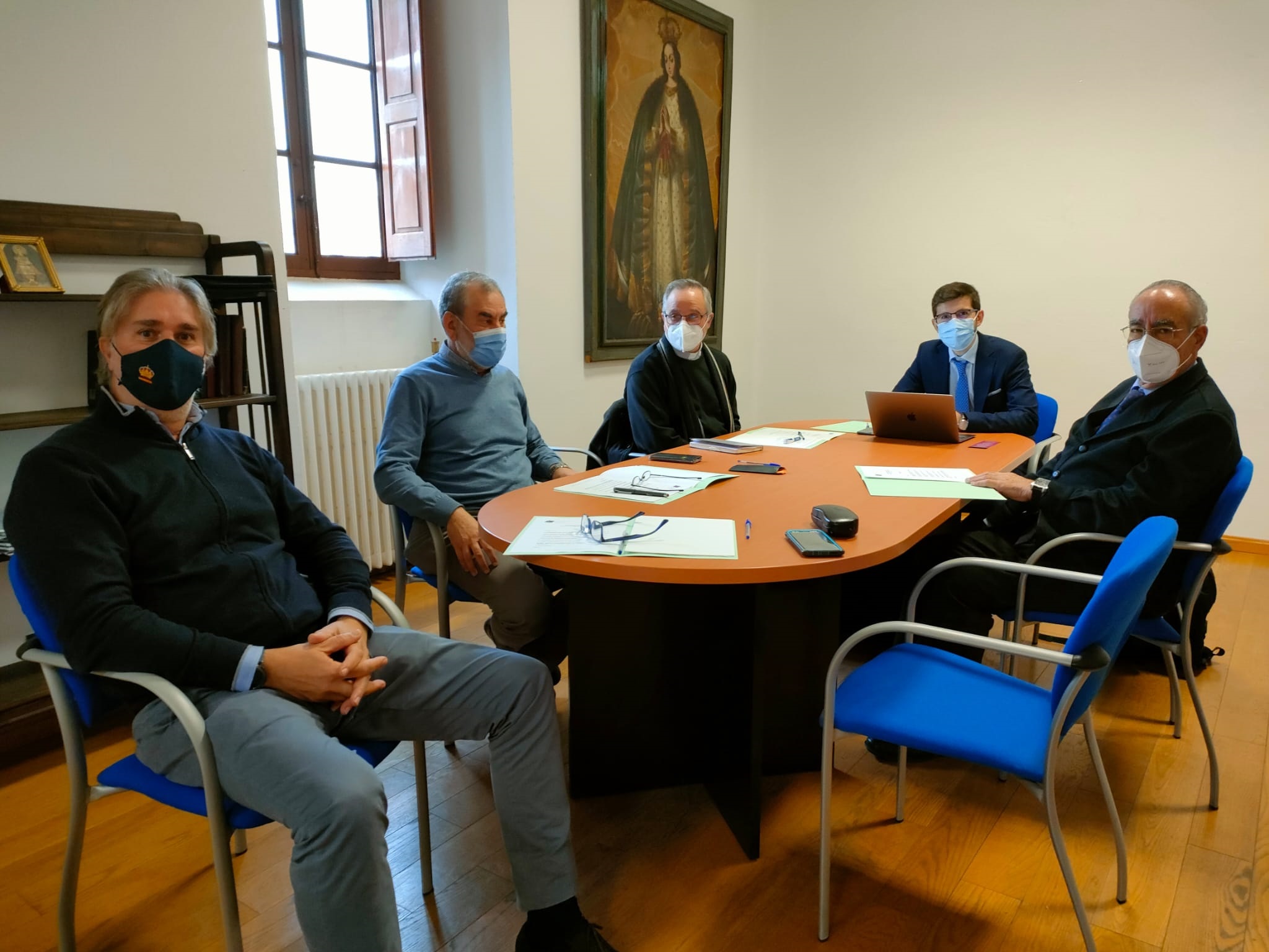 Los ecónomos de las cuatro diócesis de la Provincia Eclesiástica de Oviedo, en la que se integran las diócesis de Oviedo, Astorga, León y Santander, han mantenido esta mañana un encuentro de trabajo en la Sala del Sínodo del Obispado de León para reforzar la respuesta común de la Iglesia frente a la situación de pandemia, en un contexto económico de crisis que está marcado desde hace ya más de un año por una caída estimada en un tercio dentro del capítulo de las donaciones. Un diagnóstico de situación que Vicente Gutiérrez, anfitrión el encuentro y ecónomo de la Diócesis de León, Manuel María Moxó Soto, viceecónomo de la Diócesis de Santander, Antonio Nistal, ecónomo de la Archidiócesis de Oviedo, y Celestino Mielgo Domínguez, ecónomo de la Diócesis de Astorga, pudieron compartir con el director del Secretariado para el Sostenimiento de la Iglesia de la Conferencia Episcopal Española (CEE), José María Albalad, quien enmarcó esta actividad en una ronda de visitas con los responsables económicos de todas las diócesis españolas que se viene desarrollando desde el pasado mes de noviembre.