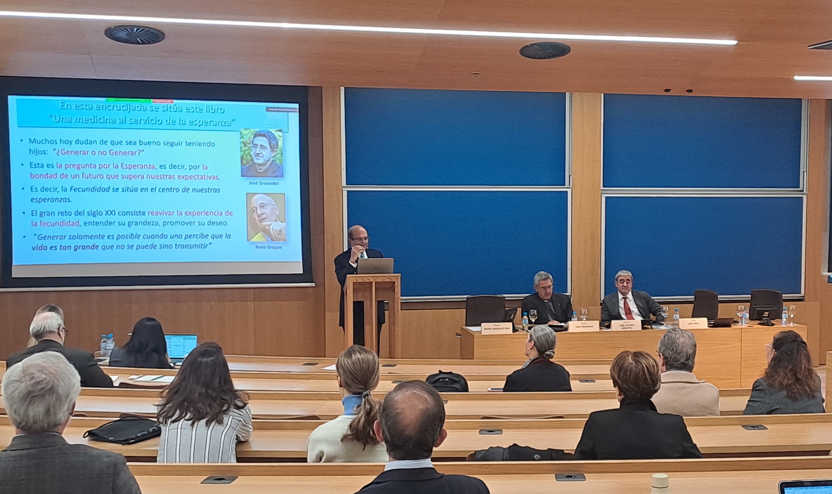 El pasado jueves, presentaron este libro en la sede de postgrado de la Universidad de Navarra en la que intervinieron alguno de los ponentes recogidos en este ensayo: José Antonio Arraztoa, Ginecólogo y Profesor Titular de la Universidad de los Andes; José Granados, Superior General de los Discípulos de los Corazones de Jesús y María, y co-fundador del Veritas Amoris Project; Nieves González Rico, Licenciada en Medicina y Cirugía por la Universidad de Valladolid. Máster en Sexología y Monitora de Métodos Naturales de Regulación de la Fertilidad y Educación Afectiva y Sexual; Lourdes Durango, enfermera especialista en Fertilidad natural en la Clínica Universidad de Navarra, Madrid; Eva Corujo, Licenciada en Farmacia en la Universidad Complutense, máster en Bioética y experta en Reconocimiento de la Fertilidad y Educación Afectivo-sexual. Desempeña su labor profesional en Letyourselves; Guadalupe Alsina, Licenciada en Farmacia en la Universidad Complutense, máster en Bioética y experta en Reconocimiento de la Fertilidad y Educación Afectivo-sexual. Desempeña su labor profesional en Letyourselves; Javier Vidal-Quadras, abogado y secretario general de la IFFD, federación con estatus consultivo en la ONU.