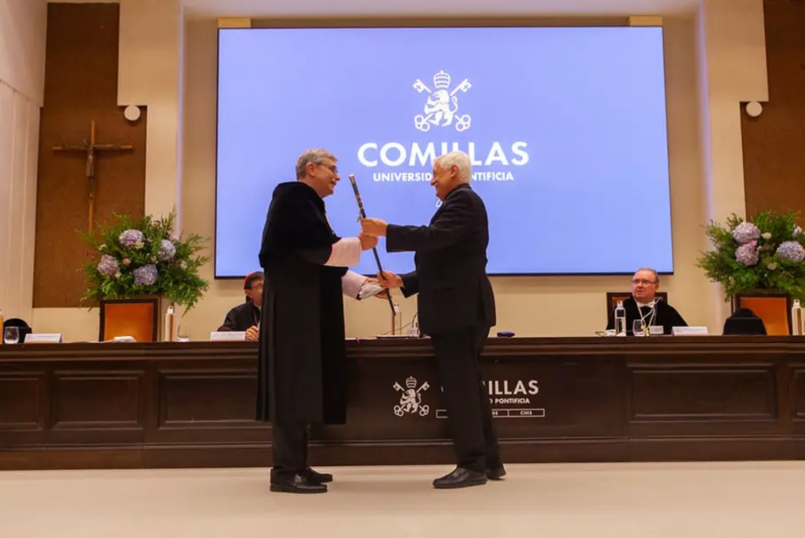 La Universidad Pontificia Comillas se vistió de gala para inaugurar un nuevo curso académico. Este año, la celebración del acto de inauguración del curso 2024-25 coincidió con la toma de posesión de un nuevo rector, Antonio Allende, SJ. El prepósito general de la Compañía de Jesús y gran canciller de la universidad, Arturo Sosa, SJ, presidió el acto, acompañado por el provincial de España de la Compañía de Jesús y vice-gran canciller de la universidad, Enric Puiggròs Llavinés, SJ; por el cardenal arzobispo de Madrid, Emmo. y Rvdmo. José Cobo, y por el rector saliente, Enrique Sanz, SJ.