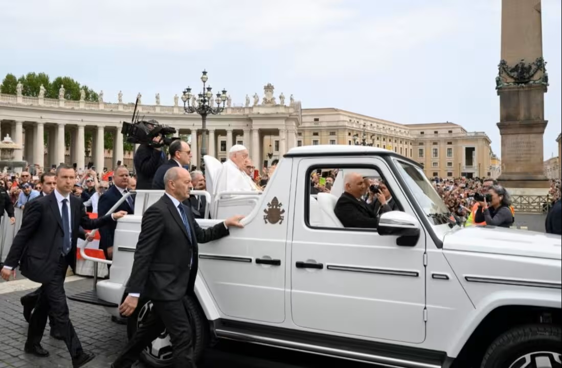 a bordo del papamóvil tras la