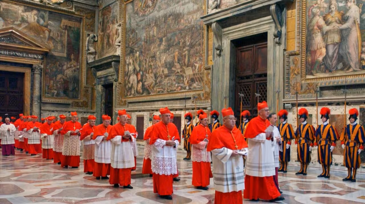 Los cardenales caminan en procesión