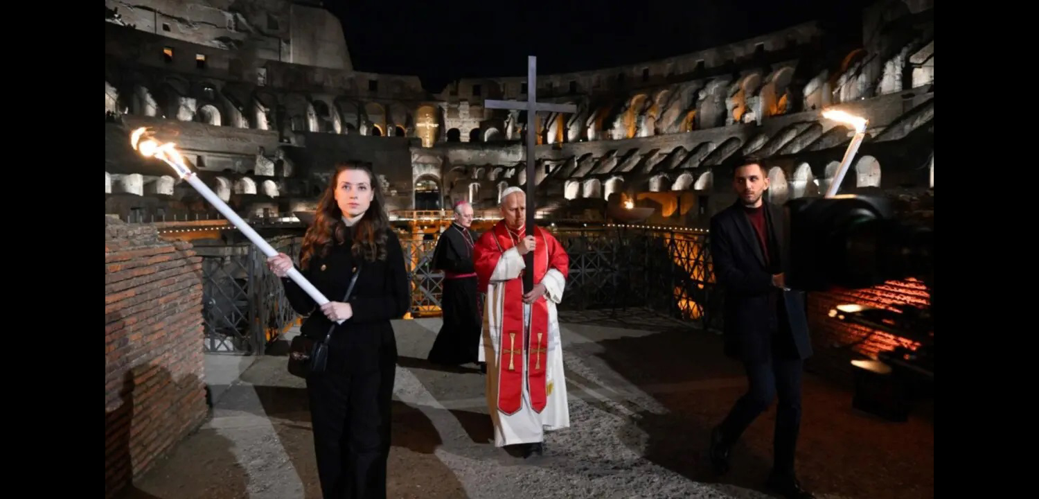 León XIV retoma el gesto que Juan Pablo II mantuvo 15 años: cargar la cruz en las 14 estaciones del Vía Crucis del Coliseo